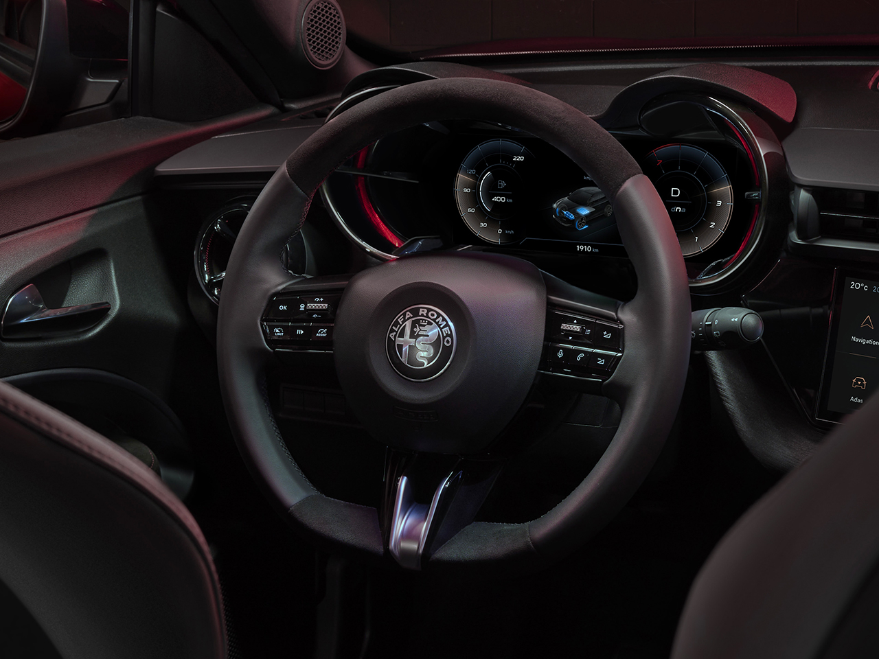 Alfa Romeo Junior Elettrica’nın iç mekanı, modern teknoloji ve İtalyan tasarımının mükemmel bir birleşimi. Sürücü odaklı kokpit, tüm kontrollerin kolayca erişilebilir olmasını sağlıyor.